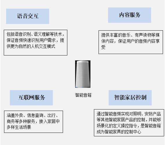 智能音箱是在傳統(tǒng)音箱基礎(chǔ)上增加了智能化功能,這功能體現(xiàn)在兩方面:一是技術(shù)上具備WiFi鏈接可語(yǔ)音交互;二是功能上可提供音樂(lè)、有聲讀物等內(nèi)容服務(wù)、互聯(lián)網(wǎng)服務(wù)以及場(chǎng)景化智能家居控制能力。