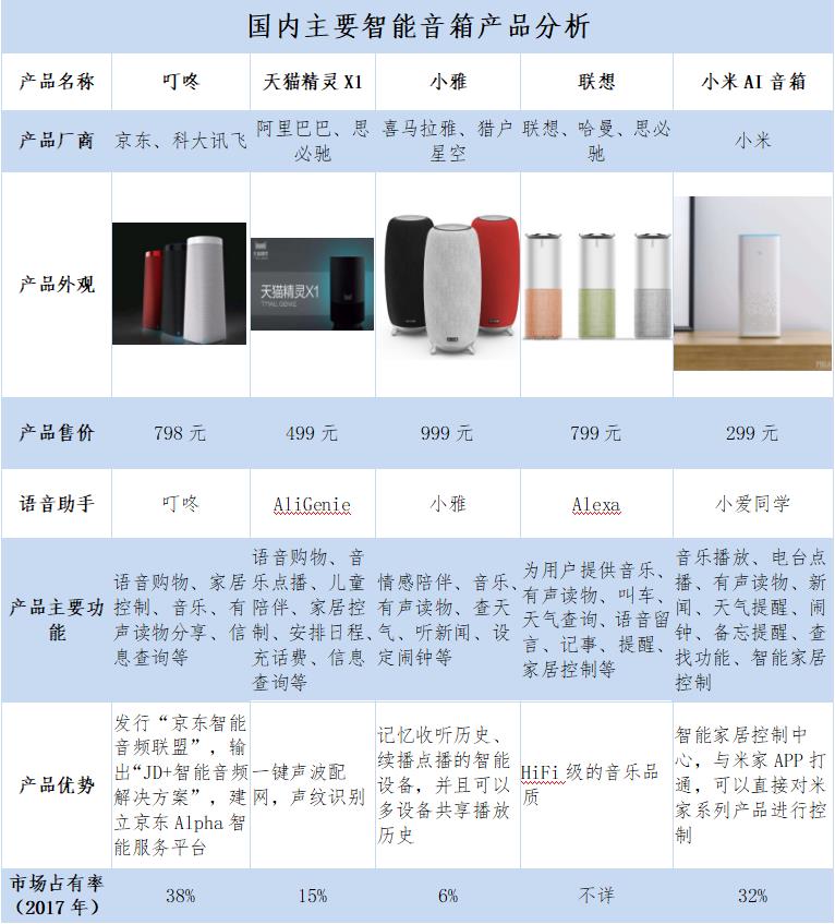 國(guó)內(nèi)主要智能音箱產(chǎn)品分析
