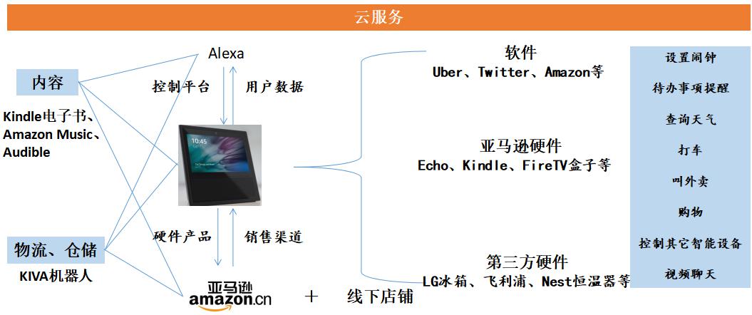 2.亞馬遜具有深厚的電商基礎(chǔ),并在內(nèi)容、硬件、平臺(tái)、云計(jì)算、物流倉(cāng)儲(chǔ)等領(lǐng)域布局,通過(guò)智能音箱整合軟件+硬件+平臺(tái)+內(nèi)容資源,進(jìn)一步盤(pán)活電商資源。