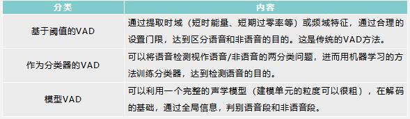 VAD 算法可以粗略的分為三類(lèi):基于閾值的VAD、作為分類(lèi)器的VAD和模型VAD。