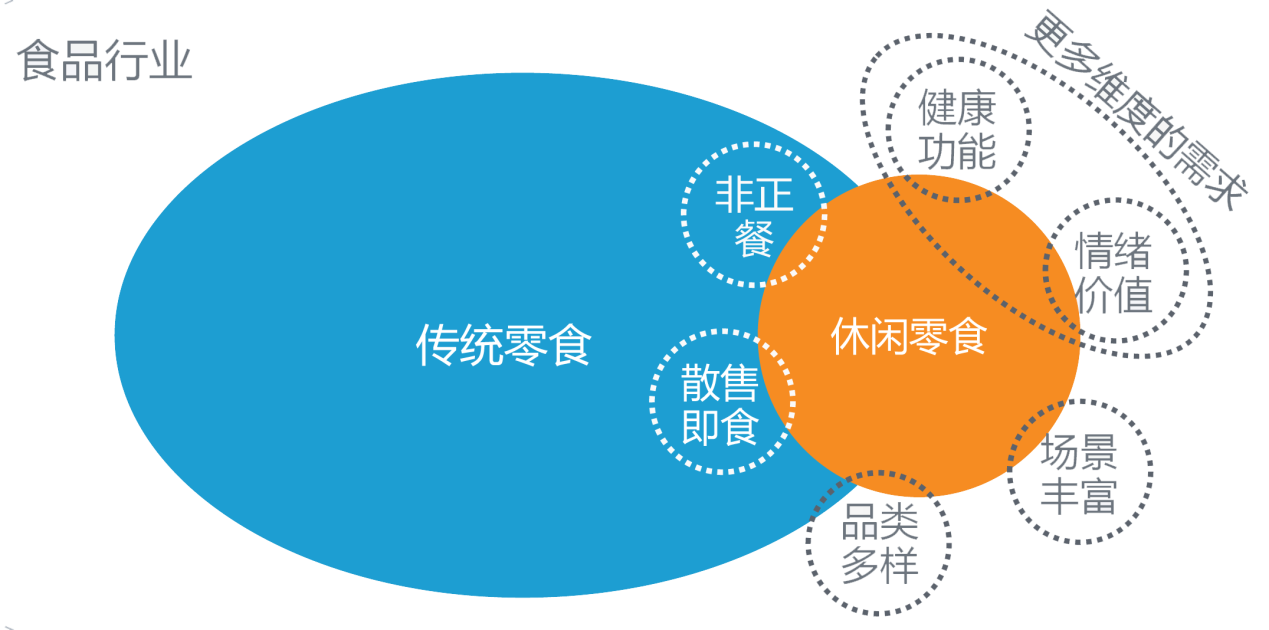 目前行業(yè)專家和資深從業(yè)者,往往認為“休閑零食”和“休閑食品”,甚至是“零食”這樣的產品概念雖然互有區(qū)別,但某種意義上又是互相交融的,畢竟不同的概念也處在不停的變動中,舊的概念在升級,新的概念在擴展: