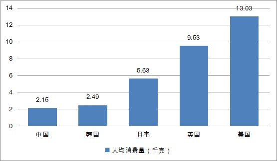 從消費額來看,中國休閑食品人均消費額為75.28元,而日本、英國、美國的該數額分別是501.4元,742.05元和859.86元,差距較大。