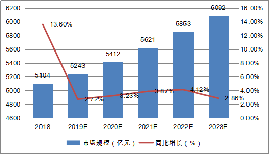 休閑食品能減輕人的心理壓力,并能幫助食用者緩解自身情緒,保持心情舒暢,由于以上特性,行業(yè)受經濟沖擊較小,未來隨著消費者的消費水平和購買力的不斷提升,前瞻預測其市場規(guī)模仍會保持增長,發(fā)展空間巨大,至2023年,其行業(yè)市場規(guī)模將會達到6092元。