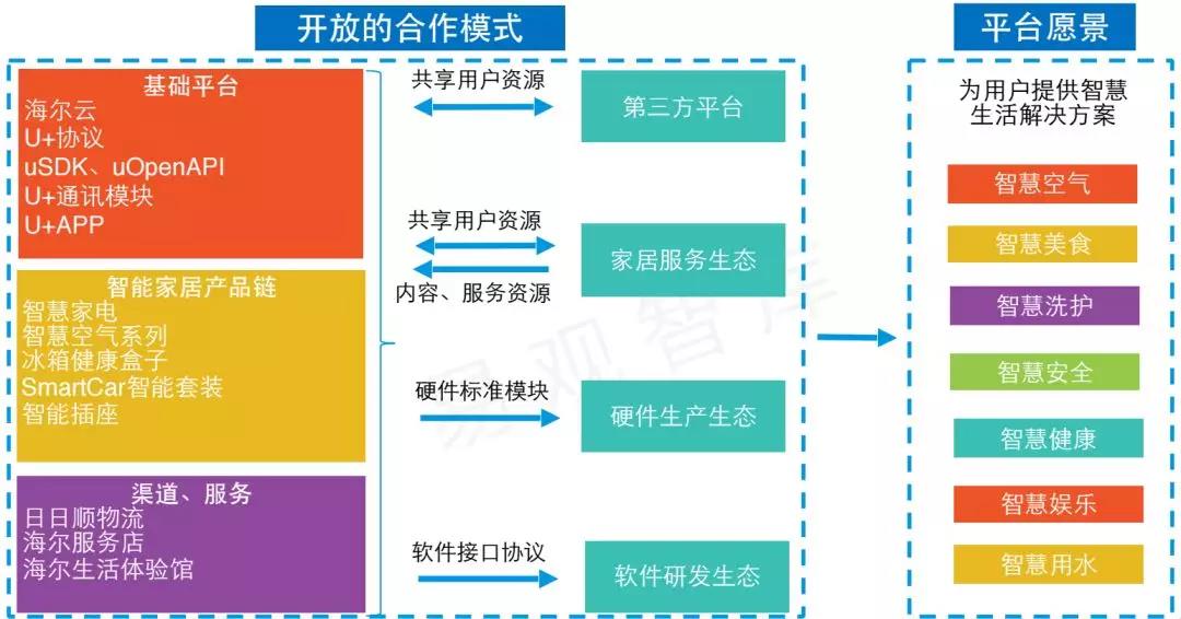在OCF、WiFi聯(lián)盟等關(guān)鍵組織中擔(dān)任重要職位的海爾,積極牽頭制定行業(yè)互聯(lián)互通和安全標(biāo)準(zhǔn)。海爾以開源開放的方式,將自身硬件+軟件+服務(wù)的能力賦能行業(yè),聯(lián)合第三方硬件合作伙伴、智能硬件創(chuàng)業(yè)團(tuán)隊(duì)、系統(tǒng)集成合作伙伴和渠道類合作伙伴共同解決智能家居行業(yè)難互通、被動服務(wù)和未成套的痛點(diǎn)。依托線上順逛平臺和線下體驗(yàn)店的建立,海爾U+智慧生活平臺實(shí)現(xiàn)在線用戶數(shù)量突破5000萬。通過與眾多百強(qiáng)地產(chǎn)企業(yè)合作,海爾智慧家庭已經(jīng)進(jìn)入全國20余個社區(qū),預(yù)計(jì)2018年還將進(jìn)入100個社區(qū)落地其智慧生活解決方案。