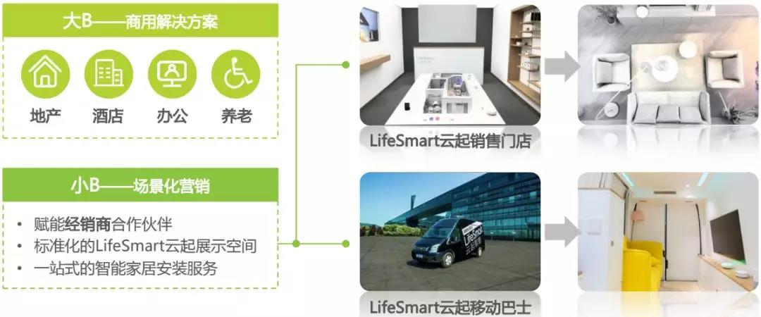 LifeSmart云起的全屋智能解決方案主要面向高端用戶群體,通過B端的線下渠道銷售給最終用戶。一方面,LifeSmart云起與房地產(chǎn)、酒店、養(yǎng)老等行業(yè)客戶達(dá)成戰(zhàn)略合作,采用項(xiàng)目制的方式落地商用解決方案。同碧桂園聯(lián)手打造的馬來西亞森林城市智能豪宅、為阿里巴巴定制的智能會議系統(tǒng)等都是其中的標(biāo)桿案例。另一方面,LifeSmart云起基于眾多中小經(jīng)銷商客戶,構(gòu)建起穩(wěn)固的銷售渠道。通過向經(jīng)銷商輸出標(biāo)準(zhǔn)化的展示空間和服務(wù)體系,可以由智能機(jī)器人完成LifeSmart云起樣板間內(nèi)的產(chǎn)品介紹和演示。依靠可視化的智能家居體驗(yàn)與一站式的安裝服務(wù),LifeSmart云起不僅可以觸達(dá)到廣泛的終端消費(fèi)者,更能夠有效實(shí)現(xiàn)用戶流量的轉(zhuǎn)化。