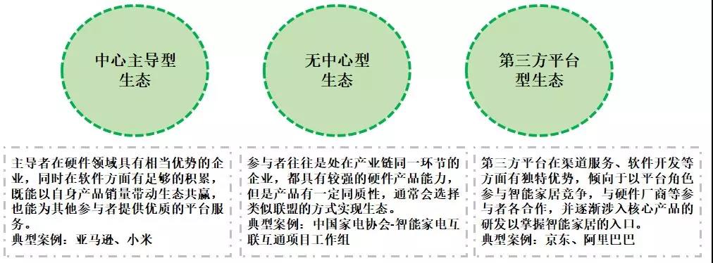 智能家居行業(yè)涉及面非常廣泛,各垂直細(xì)分領(lǐng)域之間壁壘高,完整的智能家居生態(tài)不是某個或某幾個獨(dú)立的智能單品所能代表的。行業(yè)本身的特性意味著一家獨(dú)大的情形難以出現(xiàn),勢必要跨界融合,將不同環(huán)節(jié)和細(xì)分領(lǐng)域的參與者囊括進(jìn)來。盡管越來越多的企業(yè)開始秉承著開放的心態(tài)達(dá)成合作,但對于生態(tài)的具體形態(tài)、每個參與者的位置和利益分配的方式尚無定論。通常,在行業(yè)內(nèi)有一定領(lǐng)先優(yōu)勢的頭部企業(yè),大多希望憑借既有優(yōu)勢主導(dǎo)生態(tài)的形成和發(fā)展,而中小企業(yè)和創(chuàng)業(yè)公司則更傾向于選擇加入已有的生態(tài),利用生態(tài)內(nèi)的資源發(fā)揮自我價(jià)值。