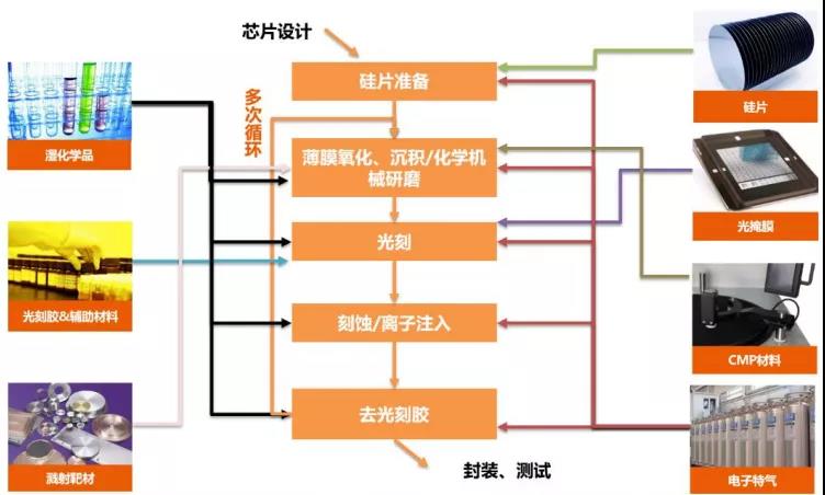 圖表2 芯片制造工序各單項工藝均配套相應(yīng)材料