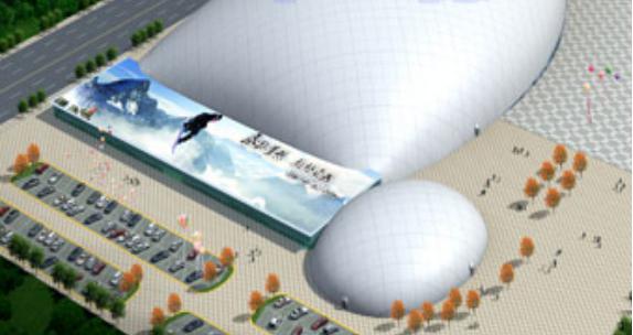 本項目為國內(nèi)首座氣膜室內(nèi)滑雪場建筑,項目總建筑面積2.5萬多平米,其中滑雪區(qū)1.6萬平米,戲雪區(qū)7500平米,冰雕區(qū)1500平米等。氣膜建筑面積2.5萬平米,跨度50~120米不等,高度15-30米之間。應用了獨創(chuàng)超低溫隔熱專利技術、超低溫隔熱專利技術、超低溫通道技術、大跨度氣膜技術、JRT鋼索網(wǎng)技術等等,可抵御16級超級臺風。其中,超低溫隔熱專利技術,導熱系數(shù)低至0.03W/M2·K 左右,達到冷藏庫隔熱水平。
