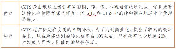 在尋找既環(huán)境友好又原料豐富的太陽能電池材料的路上,CZTS被科學(xué)家所發(fā)現(xiàn)。CZTS和CIGS在性能和制備方法上很類似,但其效率更低。