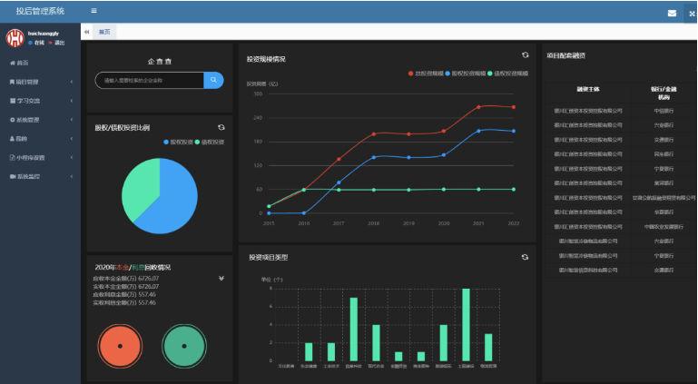 為進(jìn)一步全面推進(jìn)集團(tuán)公司國(guó)企改革三年行動(dòng)工作落實(shí)落地,積極探索公司數(shù)字化轉(zhuǎn)型新路徑,推動(dòng)數(shù)字經(jīng)濟(jì)與風(fēng)險(xiǎn)防控深度融合,著力提升公司合規(guī)風(fēng)控及投后管理的標(biāo)準(zhǔn)化、規(guī)范化、信息化水平,銀川智慧信息科技有限公司根據(jù)集團(tuán)公司關(guān)于國(guó)企改革、數(shù)字化轉(zhuǎn)型和高質(zhì)量發(fā)展的整體工作部署,打造了投后管理系統(tǒng)平臺(tái),目前,已正式投入使用。平臺(tái)旨在通過(guò)投后管理系統(tǒng)平臺(tái)進(jìn)行良好的投后管理,為化解風(fēng)險(xiǎn)提供精準(zhǔn)有效的數(shù)據(jù)支撐,減少或消除潛在投資風(fēng)險(xiǎn),保障國(guó)有投資安全,實(shí)現(xiàn)國(guó)有資產(chǎn)的保值增值。