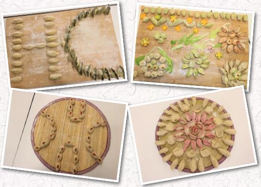 不一會兒,一“只只”精巧的餃子誕生了,元寶餃子、月牙餃子、小魚餃子、玫瑰餃子……不同的形狀、不同的顏色、不同的寓意,處處“飄散”著溫暖、溫馨和感動。